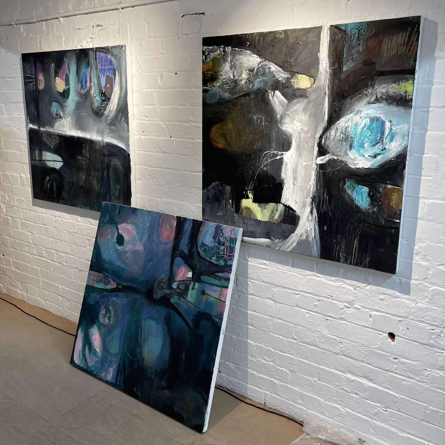 I'm currently focussed on completing a collection of 20 canvases, for what I'm calling the "Dark Spark Collection". This consists of 10x 100cmx100cm canvases, and 10x 120cmx150cm (4ftx5ft) canvases. All of these works are mainly done in acrylics, with pastel, charcoal, and pen detailing.